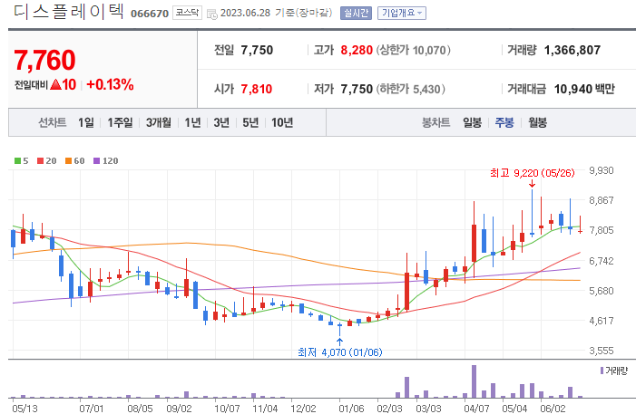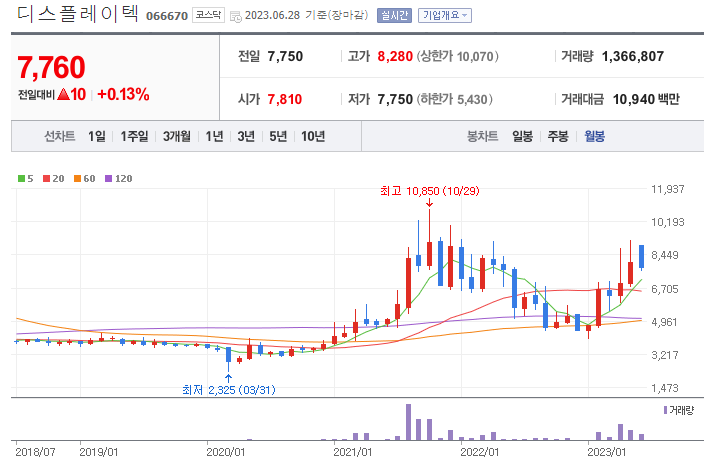 디스플레이텍은 주로 LCD 모듈의 기술을 개발하고 제조, 판매하는 업체입니다. 쉽게 말해 모니터의 기술을 개발하고 만드는 회사인데 갑자기 전기차 충전기 관련주에 편입되었을까요? 이유는 국내에서 전기차 충전사 사업을 종합적으로 영위하는 특수목적법인(SPC)인 한국자동차충전서비스라는 회사의 지분을 약 18%정도 보유하고 있기 때문입니다.